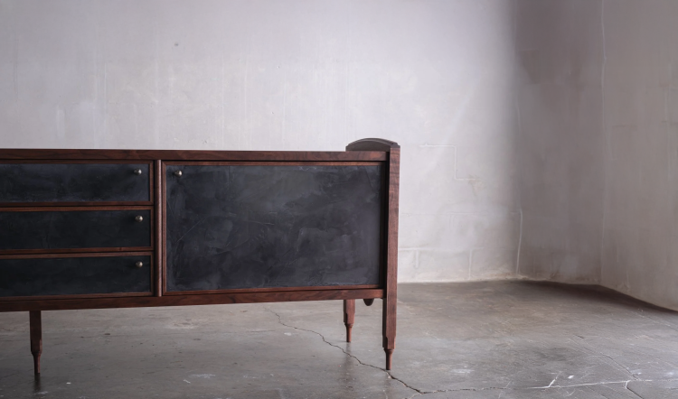 Designed and made in Maine by Parker Burkhart, the Lassel Collection strikes a balance between sculptural presence and refined utility. Exquisite woodworking meets hand-applied Venetian plaster panels, complemented by details such as wallpaper-lined interiors and sand-cast bronze hardware, which add richness and character. Rooted in tradition yet distinctly modern, each piece reflects FAIR's emphasis on artistry and timeless craftsmanship.