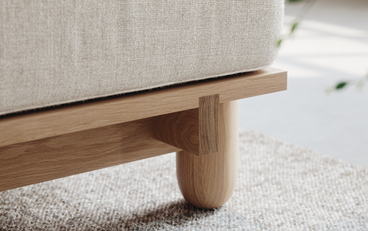 Materials: Solid domestic timber + fabric COM Wood Finish: Natural White Oak, Natural Walnut, Oxidized White Oak, Oxidized Walnut, Bleached Ash