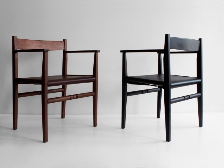 The Silo Dining Chair is available with a woven Hickory Bark seat, a woven Shaker Tape seat, or a leather sling seat.