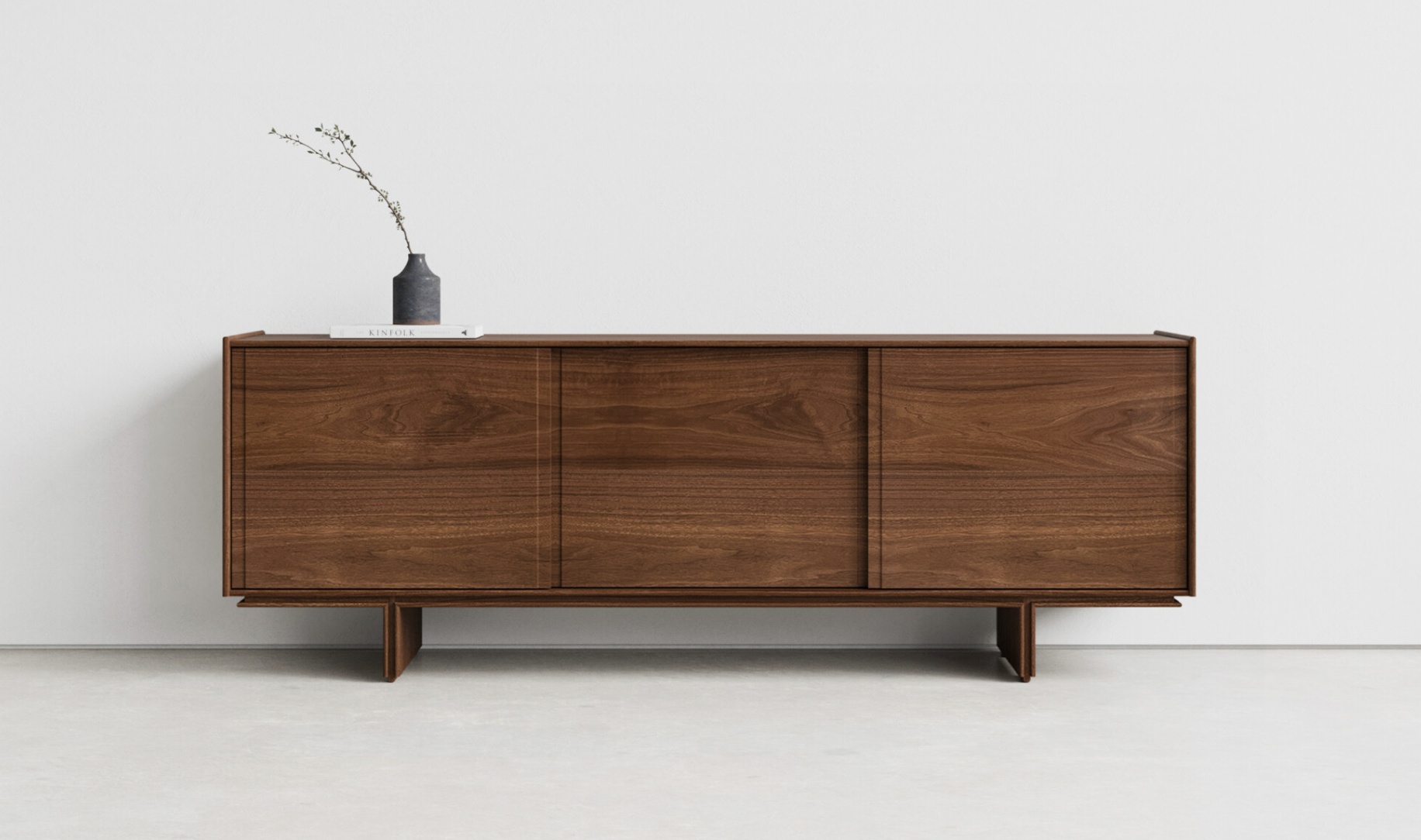 The Profile Credenza is an elevated take on traditional cabinet construction with a clean, minimal edge framing matching sliding doors. Interior outfitted with either adjustable shelving or drawers.