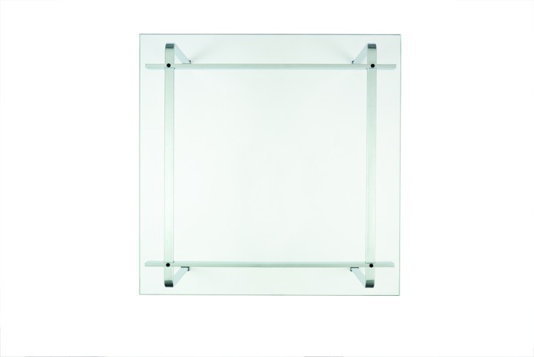 Coffee table. Frame in crome-plated steel, with 19 mm table top in glass or mable.