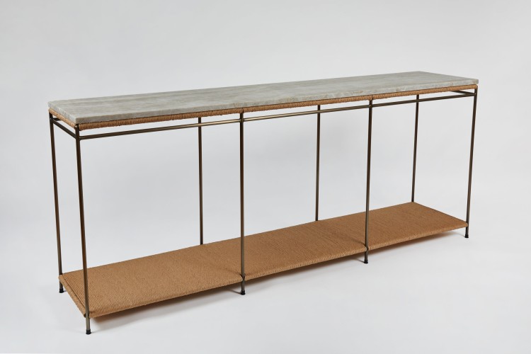 Single Rail Handwoven Rush Console with Shelf and Marble Top